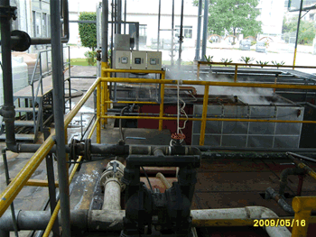 各種換槽的濃度水采用雙級氣。ㄔ校+破乳反應(yīng)進(jìn)行預(yù)處理,去除大部分懸浮物、油類和有機(jī)物后小量均勻地與清洗的淡廢水混合。混合廢水采用物化+生化+深度處理,既是斜管沉淀池、氣浮機(jī)+生物接觸氧化池、曝氣生物濾池(UBAF)+氣浮機(jī)、連續(xù)砂濾器、AO活性炭吸附氧化器。